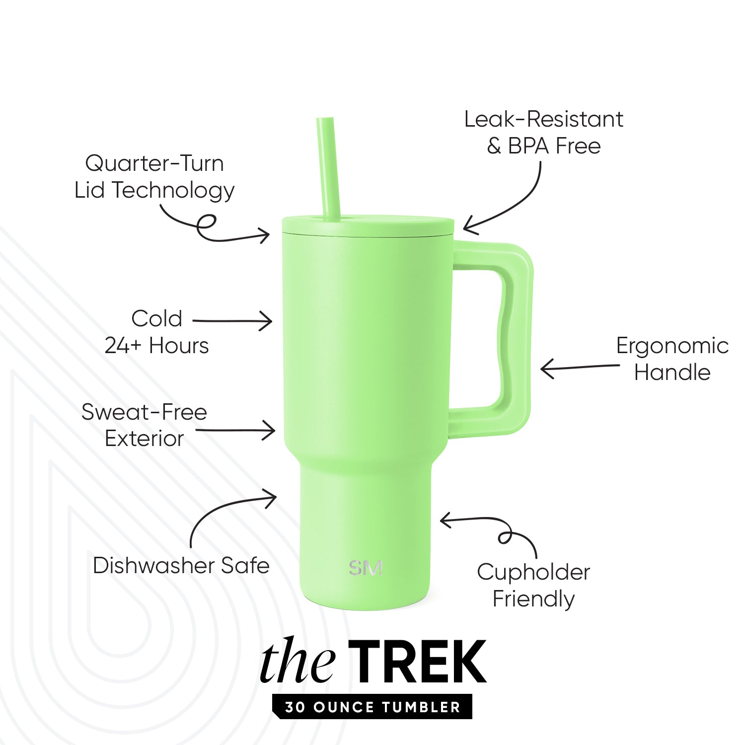 Leak-Resistant Insulated Lid: Two straws included – one color-matched and one clear Tritan plastic straw.